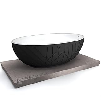 Freistehende Design Badewanne LEO Mineralguss – 170 x 105 x 55 cm – Farbe wählbar, Farbe:Weiß matt