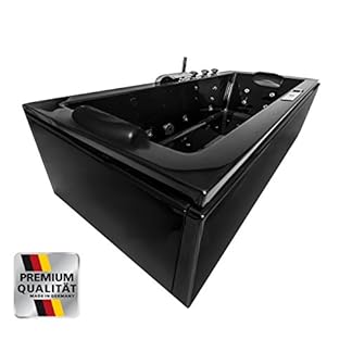 €2199,00Produkt kaufenWhirlpool Badewanne Relax Profi – Schwarz – Made in Germany – (190×90 cm) Eckmontage Links oder Rechts – mit 22/24 Massagedüsen, Mit Armaturen, Ozon Desinfektion, Heizung, LED, Bluetooth-Radio