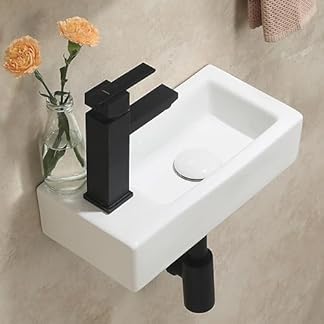 €150,00Produkt kaufenHOROW Waschbecken Hängend, Wandwaschbecken Eckig Weiß Keramik Porzellan Mini Handwaschbecken Klein Gäste WC, Hahnloch Links, 370 x 185 x 90 mm, kein Pop-up-Abfluss