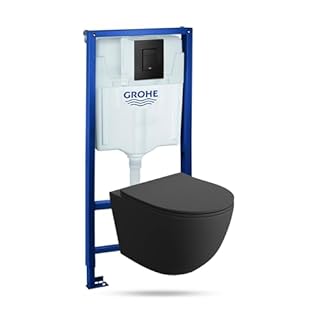€479,90Produkt kaufenGROHE Vorwandelement Solido + Wand Hänge WC Sinto Schwarz Spülrandlos + WC Sitz mit Absenkautomatik Schwarzer Knopf Komplettset Unterputz Spülkasten Toilette Komplett Sett WC