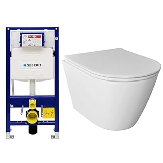 €179,95Produkt kaufenAlpenberger Wand WC Spülrandlos | Kloschüssel mit Toilettendeckel D Form | Moderne Toilette mit Geberit Spülkasten WC Vorwandelement Set | Hänge WC Komplettset