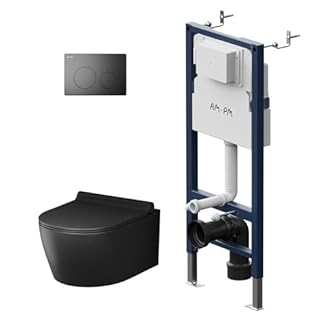 €469,95Produkt kaufenAlpenberger Wand WC Spülrandlos | Kloschüssel mit Toilettendeckel D Form | Moderne Toilette Schwarz Matt mit Geberit Spülkasten WC Vorwandelement Set | Hänge WC Komplettset