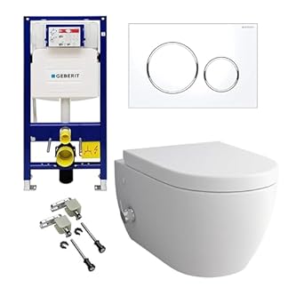 €189,00Produkt kaufenAlpenberger Wand WC Spülrandlos | Bidet WC Set | Dusch WC | Kloschüssel mit Armatur & Schallschutz | Toilettendeckel D Form | Hänge WC mit Intimdusche | Taharet WC Passend Geberit