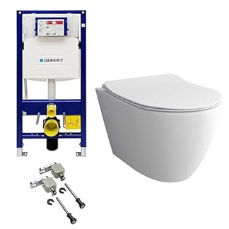 €511,95Produkt kaufenAlpenberger Wand WC Spülrandlos mit WC Sitz mit Absenkautomatik | Kloschüssel mit WC Spülkasten Bausatz Betätigungsplatte | Vorwandelement WC Set Komplett | Passend Geberit (9024)