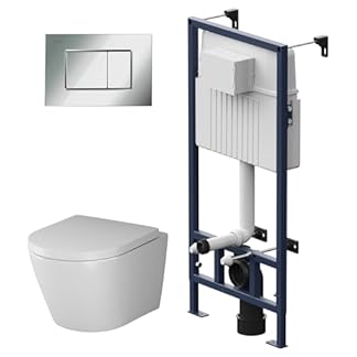 €379,00Produkt kaufenAM.PM – Hänge WC Komplettset, Vorwandelement WC Set Komplett Vormontiert (ProC) + Wand WC Weiß ohne Spülrand (Hit) + Drückerplatte + WC-Sitz mit SoftClose-Absenkautomatik, Toilette Komplett Set