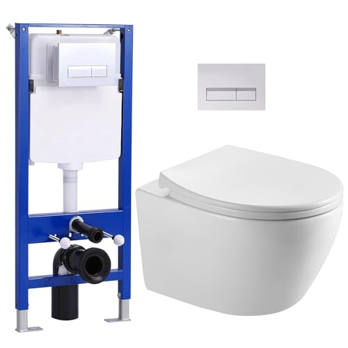 LIEFERUMFANG: Spülrandloses WC allesamt hochwertiger Sanitär Keramik. Rundheraus WC Set mit WC-Sitz Soft Close. DIN genormte Anschlüsse. Waagerechter Abdikation. Wandanschluss. Inkl. Montaganleitung & -material. B 355 x T 520 mm