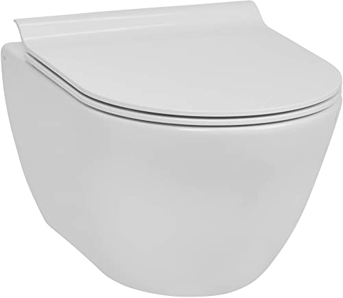 Alpenberger Wand WC Spülrandlos mit WC Sitz mit Absenkautomatik | Kloschüssel mit WC Spülkasten Bausatz Betätigungsplatte | Vorwandelement WC Set Komplett | Passend Geberit (9024)