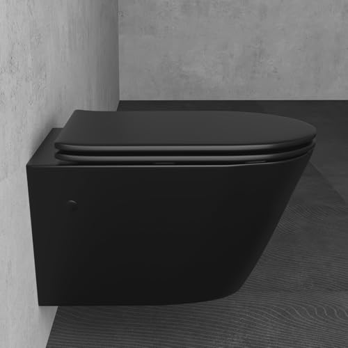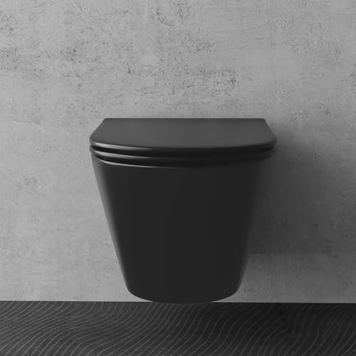 LIEFERUMFANG: Spülrandloses Hänge WC jeder Keramik – schwarze Retirade Mit Hilfe von Nano Beschichtung. Abnehmbarer Toilettendeckel Mit Hilfe von Absenkautomatik. Maße: 51,5 cm Länge, 37 cm Breite