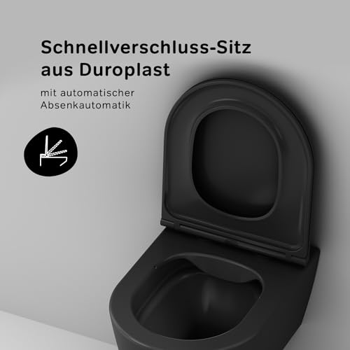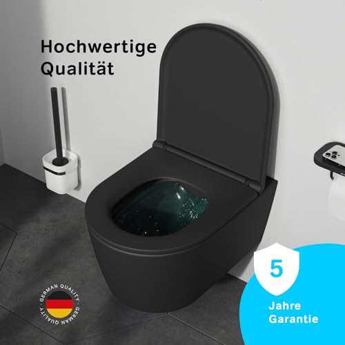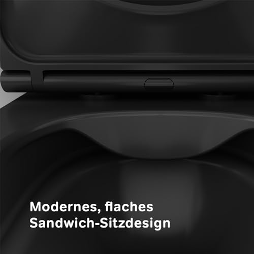 AM.PM Func – Spülrandlos Hänge WC Schwarz Matt, Tiefspül Toilette FlashClean, Wand WC mit Toilettendeckel mit Absenkautomatik, Schwarze Toilette aus Keramik, 49 cm lang