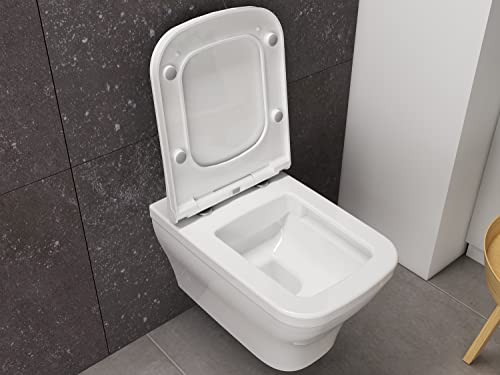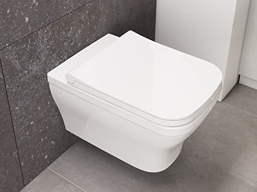 Aqua Bagno | Hänge-WC Firo mit Softclose-Funktion, spülrandlos, eckige Toilette aus Keramik, Tiefspüler | 53,5 cm lang