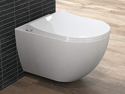 Aqua Bagno | Hänge-WC Spülrandlos, Keramik Toilette mit Softclose-Funktion, Wandmontage, Tiefspüler WC | 51 cm lang
