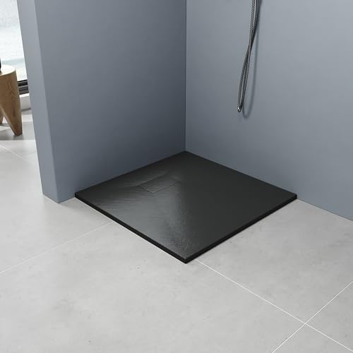 AQUABATOS SMC Duschwanne 80×80 cm Schwarz Eckig Quadratisch Duschtasse Duschbecken Brausewanne Brausetasse Rutschfest Bodengleich Ebenerdig Steinoptik Schieferoptik (Ablaufgarnitur nicht Inklusive)