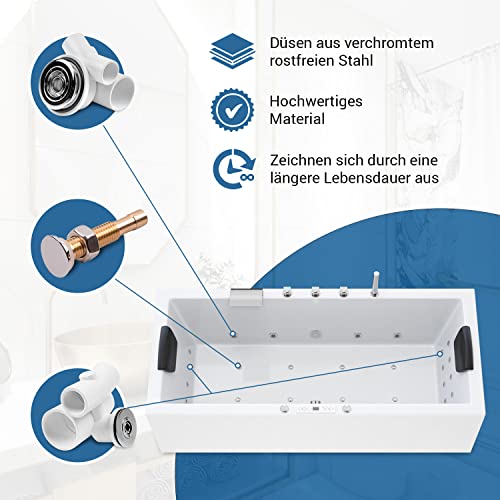 🔵 𝐀𝐔𝐒𝐒𝐄𝐇𝐄𝐍: Auf Grund des eleganten und luxuriösen Designs und des zeitlosen Looks passt der Jacuzzi Whirlpool perfekt in jedes Badezimmer. Sie können diesen rechteckigen Whirlpool sowohl an der Wand denn aka frei im Badezimmer platzieren. Das luxuriöse Aussehen der Whirlpool-Badewanne wird in Anbetracht die hochqualitative Verkleidung betont