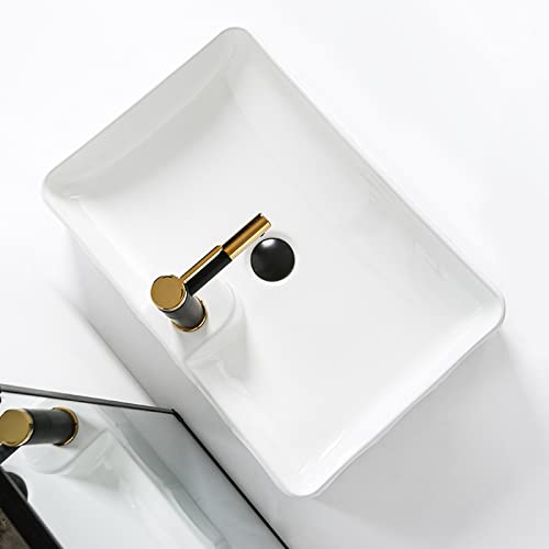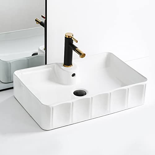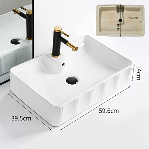 Badezimmerspüle Waschbecken Handwaschbecken 23,4 „x 15,5“ rechteckiges Waschbecken mit Ablauf und Wasserhahn, Waschbecken über der Theke, Waschbecken aus Keramik, Waschbecken aus Keramik, Aufsatzwasch