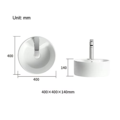 Badezimmerspüle Waschbecken Handwaschbecken Rundes 15,7-Zoll-Waschbecken mit Armaturen, Waschbecken über der Theke, weiße Waschbecken, Keramik-Waschbecken, Aufsatzwaschbecken, runde Waschbecken for Ba
