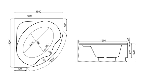 ✔️ Tauchen Sie ein in ein luxuriöses Bad in der Eckbadewanne STANDARD Badewanne mit den Maßen 150×150 und einem Fassungsvermögen von 300.