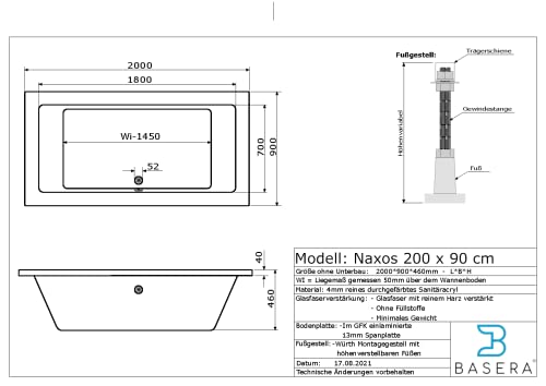 Basera® BASIC Indoor Whirlpool Badewanne Naxos mit 16 Massagedüsen, Wasserfall, LED-Ambiente