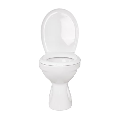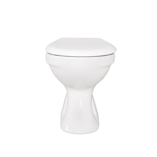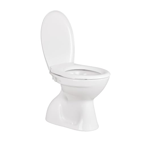 Hergestellt aufgebraucht hochwertiger und stabiler Sanitärkeramik, die eine spezielle Beschichtung besitzt, um eine längere Lebenszeit zu gewähren, lässt sich dieses WC wie Stand-Retirade installieren. Dank seiner Standard-Installations-Maße passt es zumal in die meisten Badezimmer. Die glatte Oberfläche wirkt schmutzabweisend und erleichtert demgemäß die Reinigung. Bei diesem Modell handelt es sich um ein Stand-WC mit einem senkrechtem Bodenabgang.