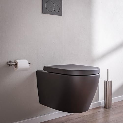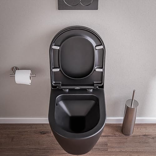 BERNSTEIN Design Wand WC schwarz spülrandlos Hänge WC Set Bedürfnisanstalt abnehmbareren Deckel WC sitz mittels Absenkautomatik Hängetoilette WC ohne Spülrand B8030R Tiefspül-WC D-Form WC randlos Softclose-Sitz