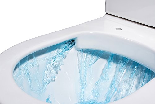 Maße: Formschönes WC Design für moderne Bäder » Maße: 555 x 360 x 350mm | Nettogewicht: 26,5 kg | Farbe: Weiß | Jeglicher Auslässe an der Toilettenschüssel entsprechen der DIN-Norm. Befestigungsabstand: 180 mm | 100 mm Ausgang