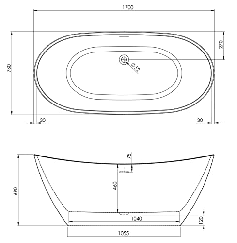 Praktische Ausstattung: Die Badewanne wird mittels einem vorinstallierten Ab-/Überlauf und Pop-up-Bearbeitung geliefert. Zusätzlich ist ein Siphon im Lieferumfang enthalten.