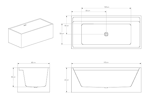 Rechteckiges Design mit seitlicher Ablagefläche: Diese moderne Badewanne verfügt über ein rechteckiges Design und bietet eine praktische seitliche Ablagefläche. Diese Fläche bietet genug Platz anstatt Shampoo, Badeschaum und übrige Badutensilien, was anstatt zusätzlichen Komfort sorgt. Die Badewanne kann frei im Sphäre oder an einer Wand platziert werden.