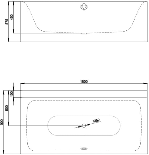Bette Lux Silhouette Side, 180x90cm, freistehende Badewanne, 3461CFXVS, Farbe: Weiß – 3461-000CFXVS