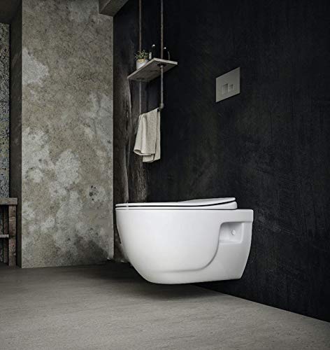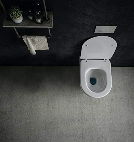 Brilla Spülrandlose Toilette 53 cm | inkl. Abnehmbaren Soft Close WC Sitz | Spülrandloses Wandhänge WC | Moderne Design Hänge Toilette aus Keramik | Weiß
