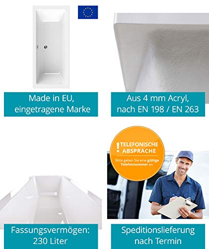 ✅ UV-BESTÄNDIG & PFLEGELEICHT: Acryl ist farbecht und UV-unabänderlich: Kein Vergilben oder Verfärben! Auf der glatten, porenarmen Oberfläche haften weder Abfall noch Keime. Also ist diese leicht zu reinigen und die Badewanne bleibt Dir lange erhalten.