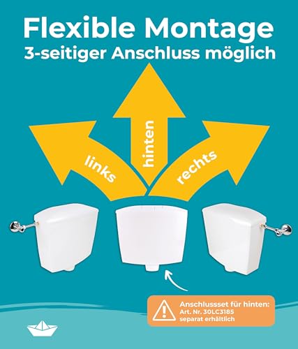 ⌛ FLEXIBLE MONTAGE: Sei vulgo Daneben der Montage des WC Spülkasten Aufputz adaptiv. Wähle den rechten oder leimen Anschluss oder nutze das separate Befestigungsset 30LC3185 anstatt die Montage von achtern.