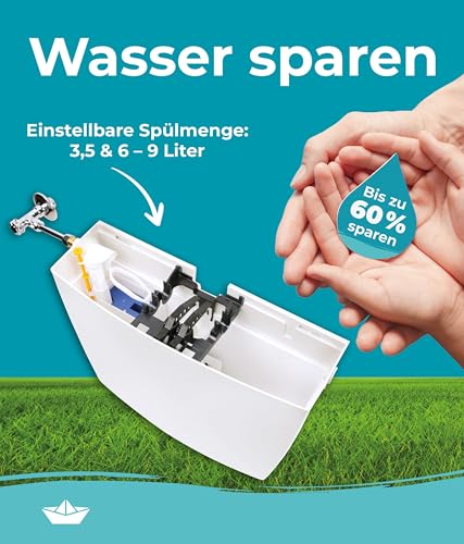 ❁ WASSER SPAREN: Hol Dir den WC Spülkasten mit 2-Mengen-Spülung (3,5 & 6 – 9 l) und spare bis zu 60 % Wasser ein. Daneben 6 l ist der Wasserkasten vulgo brauchbar anstatt spülrandlose WCs.