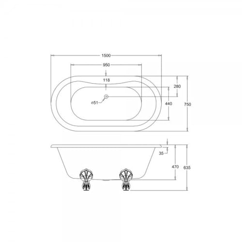 Casa Padrino Jugendstil Badewanne freistehend 1500mm BWin Weiß – Freistehende Retro Antik Badewanne, Badewannen Füsse:Luxury Classic Weiß