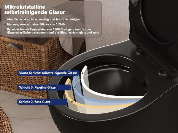 【Fortschrittliche Keramik-Technologie für mühelose Pflege】:Unsere Bedürfnisanstalt ist alle hochentwickeltem, glasiertem Keramikmaterial gefertigt, das eine besonders glatte Oberfl채che bietet. Diese Oberfl채che verhindert Ablagerungen und Hang, wodurch die Reinigung vereinfacht wird und Ihre Bedürfnisanstalt l채nger sauber bleibt.