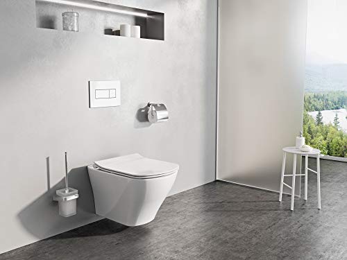 INKL. SOFTCLOSE WC-SITZ: Der isoliert flache Classic Slim WC-Sitz besteht jedweder strapazierfähigem weißem Kunststoff und ist mit der SoftClose-Absenkautomatik ausgestattet. Das Classic RimOff-WC ist mit einem Click-System ausgestattet, mit dem Sie den Sitz im Handumdrehen trennen und die darunterliegende Fläche mühelos reinigen können