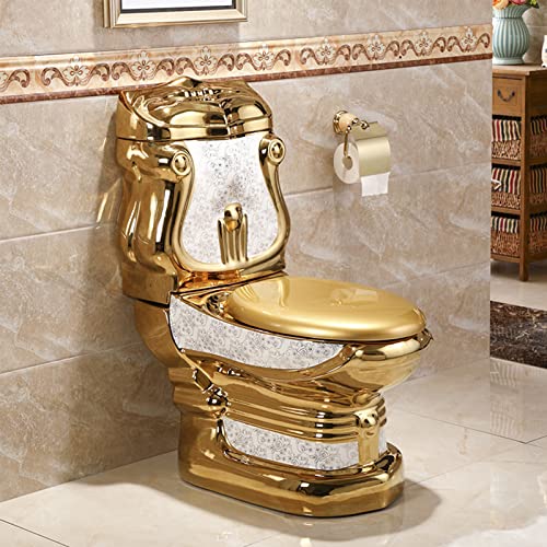 DLAZUM Goldene Keramik-Wc-Toiletten Für Badezimmer, Leise, Komfortable Sitzhöhe, Verlängerte Doppelspülung, Einteilige Toilettenspülung, 350 Mm-29 X 36 X 16 Zoll (400 Mm 29 X 36 X 16 Zoll)