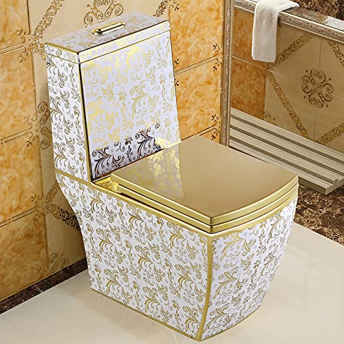 DLAZUM Modernes goldenes WC von Local Tyrant, stummes Siphon-WC, einteiliges WC mit Doppelspülung und universeller Höhe für das Badezimmer im Hotel zu Hause (A 400 mm)