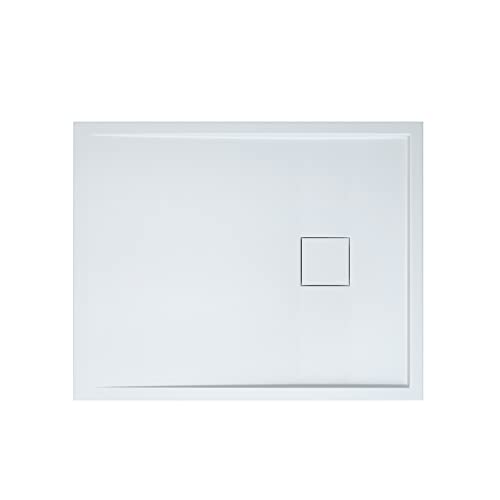 doporro Duschtasse Duschwanne 80x100x4 flach Mineralgusswanne Weiß Wärmespeichernde Eigenschaften auch für ebenerdige Dusche geeignet Geoma08