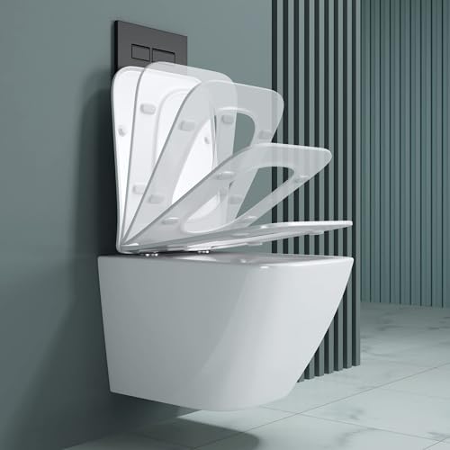 doporro Hänge-WC Weiß Wand-WC Toilette mit Soft-Close Spülrandloses aus Keramik Hänge-Toilette Aachen308
