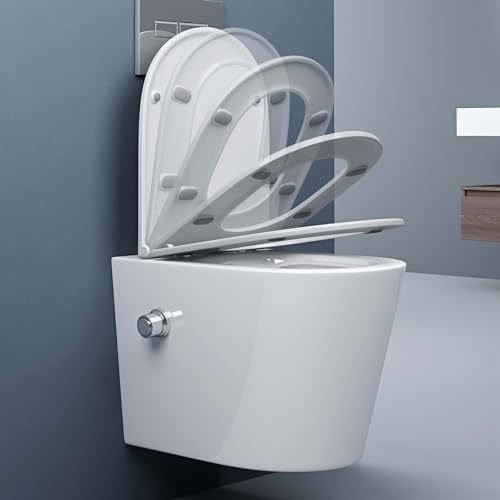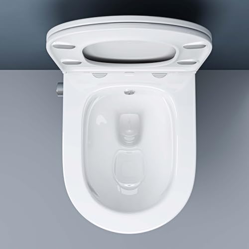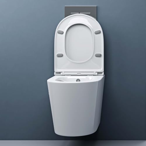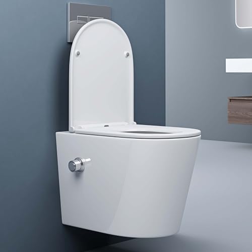 doporro Hänge-WC mit Bidet Funktion Weiß Wand-WC Toilette mit Soft-Close Spülrandloses aus Keramik Hänge-Toilette Aachen601