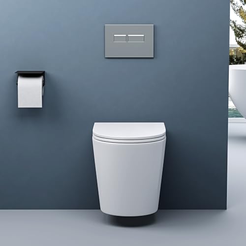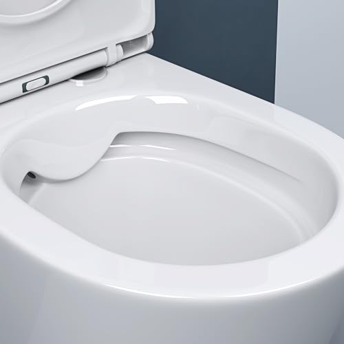 doporro Wand WC Hänge Toilette Weiß inkl. Softclose Absenkautomatik 49×35,5×35 cm Hänge-Toilette spülrandlos Hänge-WC aus Keramik Aachen108