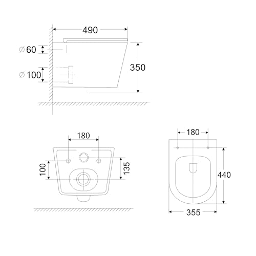 Design Hänge-WC Aachen108 | mit Silent-Close-Sitz / Absenkautomatik Maße: Tiefe: ca. 49 cm, Breite: ca. 35,5 cm, Höhe: ca. 35 cm | Material: Keramik