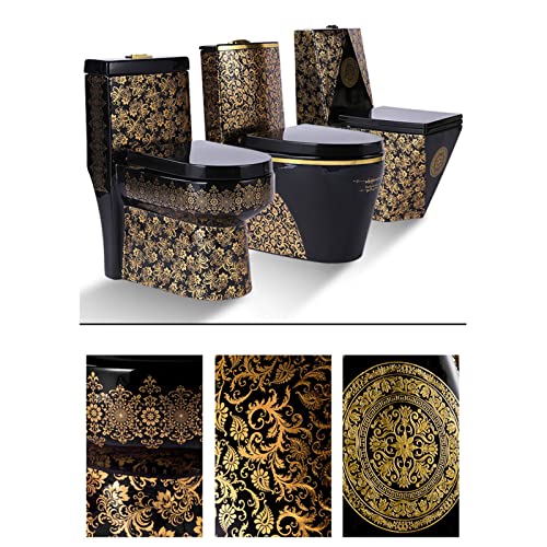 DSeenLeap Schwarzes und goldenes Keramik-WC für den Haushalt, luxuriös, leise, Bequeme Sitzhöhe, verlängertes WC mit Doppelspülung, WC mit Spülung im europäischen Stil (B 305 mm)