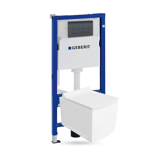 Inhalt des Kits: GEBERIT Duofix Vorwandelement Basic; Wand WC; Betätigungsplatte DELTA25. Geberit Duofix Basic Vorwandelement: Der Geberit Duofix WC-Rahmen kombiniert modernes Design mit funktionaler Technik, ideal für raumhohe Installationswände. Er ist entsprechend für hängende Toiletten nach EN 33:2011 und zeichnet sich durch seine Multifunktionalität leer. Die robuste, pulverbeschichtete Rahmenkonstruktion garantiert Langlebigkeit und Konstanz. Die verzinkten, höhenverstellbaren Montagefüße (0-20 cm) vermindern die Installation. Ein Highlight ist der Unterputz-Spülkasten mit isolierter, kondensationsverhindernder Technik, der eine effiziente und geräuscharme Spülung ermöglicht. Technische Daten umfassen u.a. eine einstellbare Spülmenge (Großspülung 4,5/6/7,5 l, Kleinspülung 3-4 l) und einen berechneten Durchfluss von 0,12 l/s. Der Lieferumfang beinhaltet aufgebraucht notwendigen Komponenten für eine problemlose Installation. Funktionsweise der WC-Schüssel: Unterputz-WC, das einfach und schnell zu montieren ist und durch die Sicherheiten der Installationselemente ein tadelloses Aussehen des Raumes gewährleistet. Das Modell verfügt über eine Platte leer hartem Duroplast, die mit einer Freifallfunktion und Schnellverschlussscharnieren ausgestattet ist. Das bei höchster Temperatur gebrannte Porzellan ist für seine Konstanz und Widerstandsfähigkeit gegenüber Kratzern und Verfärbungen verantwortlich. WC -Schüssel verfügt über das flanschlose System für eine effektive Schmutzentfernung.