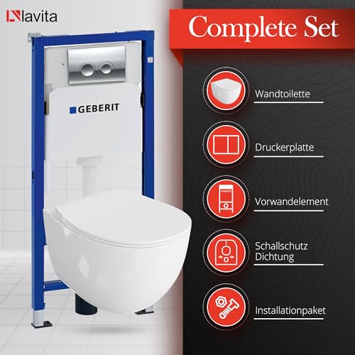 KOMPLETT-PAKET: Geberit Duofix Basic Vorwandelement + Wand-WC Tiefspül Mondo Becken Weiß Spülrandlos + Bedienplatte Delta 25 für Doppelspülung