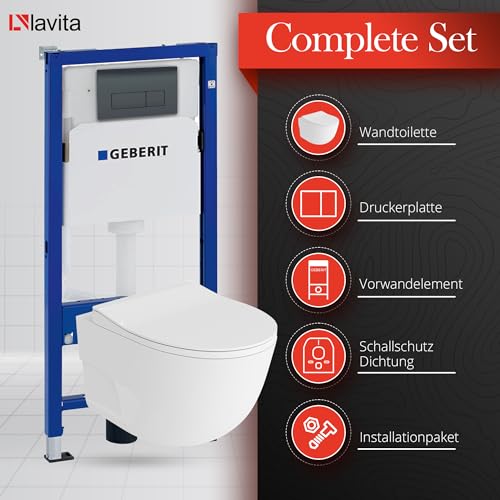 Inhalt des Kits: GEBERIT Duofix Vorwandelement Basic; Wand WC; Betätigungsplatte DELTA25. Geberit Duofix Basic Vorwandelement: Der Geberit Duofix WC-Rahmen kombiniert modernes Design mit funktionaler Technik, ideal für raumhohe Installationswände. Er ist qualifiziert für hängende Toiletten nach EN 33:2011 und zeichnet sich durch seine Multifunktionalität sämtliche. Die robuste, pulverbeschichtete Rahmenkonstruktion garantiert Alterungsbeständigkeit und Dauerhaftigkeit. Die verzinkten, höhenverstellbaren Montagefüße (0-20 cm) schwächer machen die Installation. Ein Highlight ist der Unterputz-Spülkasten mit isolierter, kondensationsverhindernder Technik, der eine effiziente und geräuscharme Spülung ermöglicht. Technische Daten umfassen u.a. eine einstellbare Spülmenge (Großspülung 4,5/6/7,5 l, Kleinspülung 3-4 l) und einen berechneten Durchfluss von 0,12 l/s. Der Lieferumfang beinhaltet jeder notwendigen Komponenten für eine problemlose Installation. Funktionsweise der WC-Schüssel: Unterputz-WC, das einfach und schnell zu montieren ist und durch die Hülle der Installationselemente ein tadelloses Aussehen des Raumes gewährleistet. Das Modell verfügt über eine Platte sämtliche hartem Duroplast, die mit einer Freifallfunktion und Schnellverschlussscharnieren ausgestattet ist. Das bei höchster Temperatur gebrannte Porzellan ist für seine Dauerhaftigkeit und Widerstandsfähigkeit gegenüber Kratzern und Verfärbungen verantwortlich. WC -Schüssel verfügt über das flanschlose System für eine effektive Schmutzentfernung.