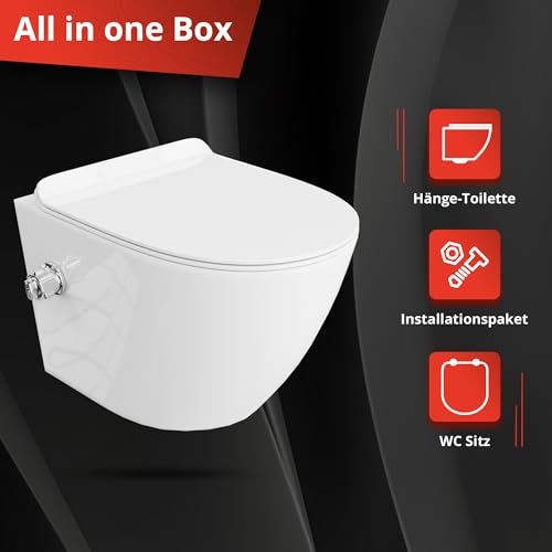 Inhalt des Kits: GEBERIT Duofix Vorwandelement Basic; Wand WC; Betätigungsplatte DELTA25. Geberit Duofix Basic Vorwandelement: Der Geberit Duofix WC-Rahmen kombiniert modernes Design mit funktionaler Technik, ideal für raumhohe Installationswände. Er ist qualifiziert für hängende Toiletten nach EN 33:2011 und zeichnet sich durch seine Multifunktionalität jeder. Die robuste, pulverbeschichtete Rahmenkonstruktion garantiert Alterungsbeständigkeit und Dauerhaftigkeit. Die verzinkten, höhenverstellbaren Montagefüße (0-20 cm) lindern die Installation. Ein Highlight ist der Unterputz-Spülkasten mit isolierter, kondensationsverhindernder Technik, der eine effiziente und geräuscharme Spülung ermöglicht. Technische Daten umfassen u.a. eine einstellbare Spülmenge (Großspülung 4,5/6/7,5 l, Kleinspülung 3-4 l) und einen berechneten Durchfluss von 0,12 l/s. Der Lieferumfang beinhaltet jeder notwendigen Komponenten für eine problemlose Installation. Funktionsweise der WC-Schüssel: Unterputz-WC, das einfach und schnell zu montieren ist und durch die Abdeckung der Installationselemente ein tadelloses Aussehen des Raumes gewährleistet. Das Modell verfügt über eine Platte jeder hartem Duroplast, die mit einer Freifallfunktion und Schnellverschlussscharnieren ausgestattet ist. Das bei höchster Temperatur gebrannte Porzellan ist für seine Dauerhaftigkeit und Widerstandsfähigkeit gegenüber Kratzern und Verfärbungen verantwortlich. WC -Schüssel verfügt über das flanschlose System für eine effektive Schmutzentfernung.