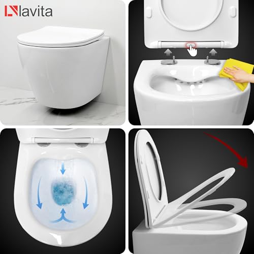 KOMFORTSITZ & HYGIENISCHE KONSTRUKTION: Soft-Close, Quick-Release WC-Sitz für verbesserten Benutzerkomfort. Spülrandloses Design mit unsichtbarer Montage, verhindert Müll- und Bakterienansammlung.