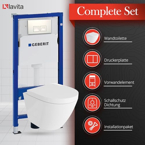 KOMPLETT-PAKET: Geberit Duofix Basic Vorwandelement + Wand-WC Tiefspül Sogo Becken Weiß Spülrandlos + Bedienplatte Delta 25 für Doppelspülung