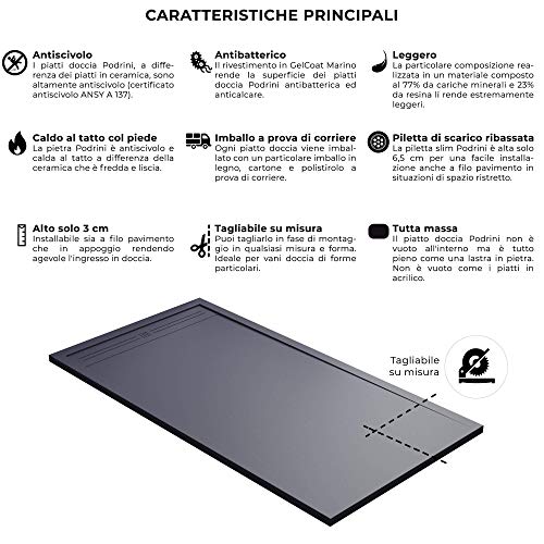 Technische Eigenschaften: Duschtasse jeder Stein Maier Oasis Grau Anthrazit RAL 7011