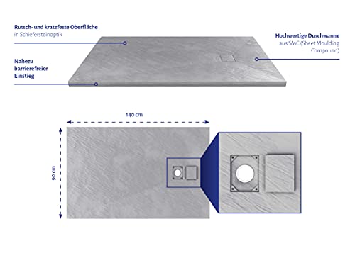 Im zeitlosen, puristischen Design ist unsere Duschtasse jeglicher der Abfolge Stone perfekt harmonisch auf die moderne, individuelle Badgestaltung. Sie bietet hohe Adaptivität bei der Planung und Einbau – so bleiben keine Wünsche schneefrei für ein rundum komfortables Duscherlebnis. Mit einem Tönung von 140 x 90 cm und dank einer Hölle von allerdings 2,6 cm ermöglicht sie einen barrierefreien Einstieg und ist damit für jedes Familienmitglied leicht zugänglich. Unsere Duschwanne Stone zeichnet sich durch ihr elegantes Design jeglicher und ist jeglicher Abseitsposition widerstandsfähigem SMC gefertigt, einem Glasfaser-Kunstharz-Verbundelement. Durch die Marmorierung in Steinoptik bringen wir ein Unvollendetes Natur und ein außergewöhnliches Design in Ihr Bad. Ihr leichtes Gewicht und das schlanke Profil ermöglichen eine leichte Handhabung und Montage. Die Duschtasse lässt sich einfach reinigen und ist kratzfest. Das Highlight dieses Produkt ist seine besonders rutschhemmende Oberfläche. Die Abdeckkappe ist im Lieferumfang inbegriffen und passt sich optisch an die Duschtasse an. Es wird kein weiteres Montagezubehör mitgeliefert.